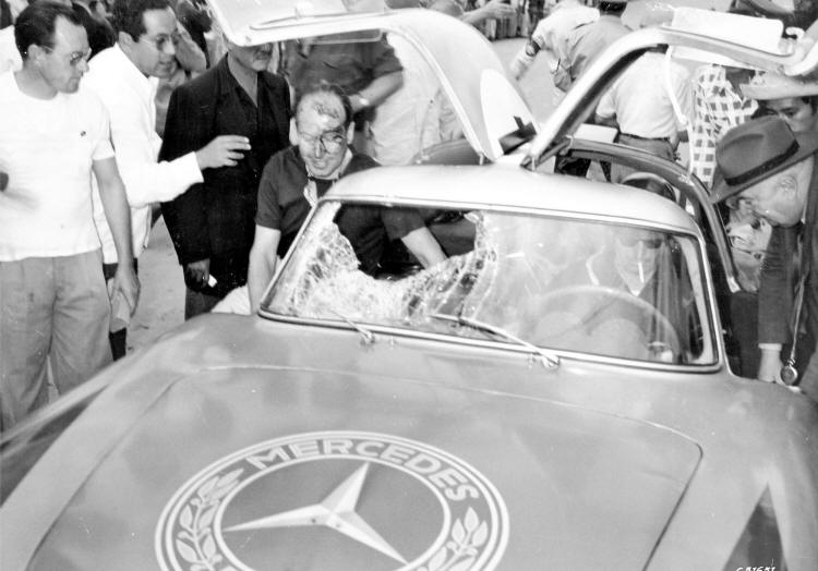 l’épisode dit du vautour. En cours de l’épreuve, le pare-brise de la 300 SL